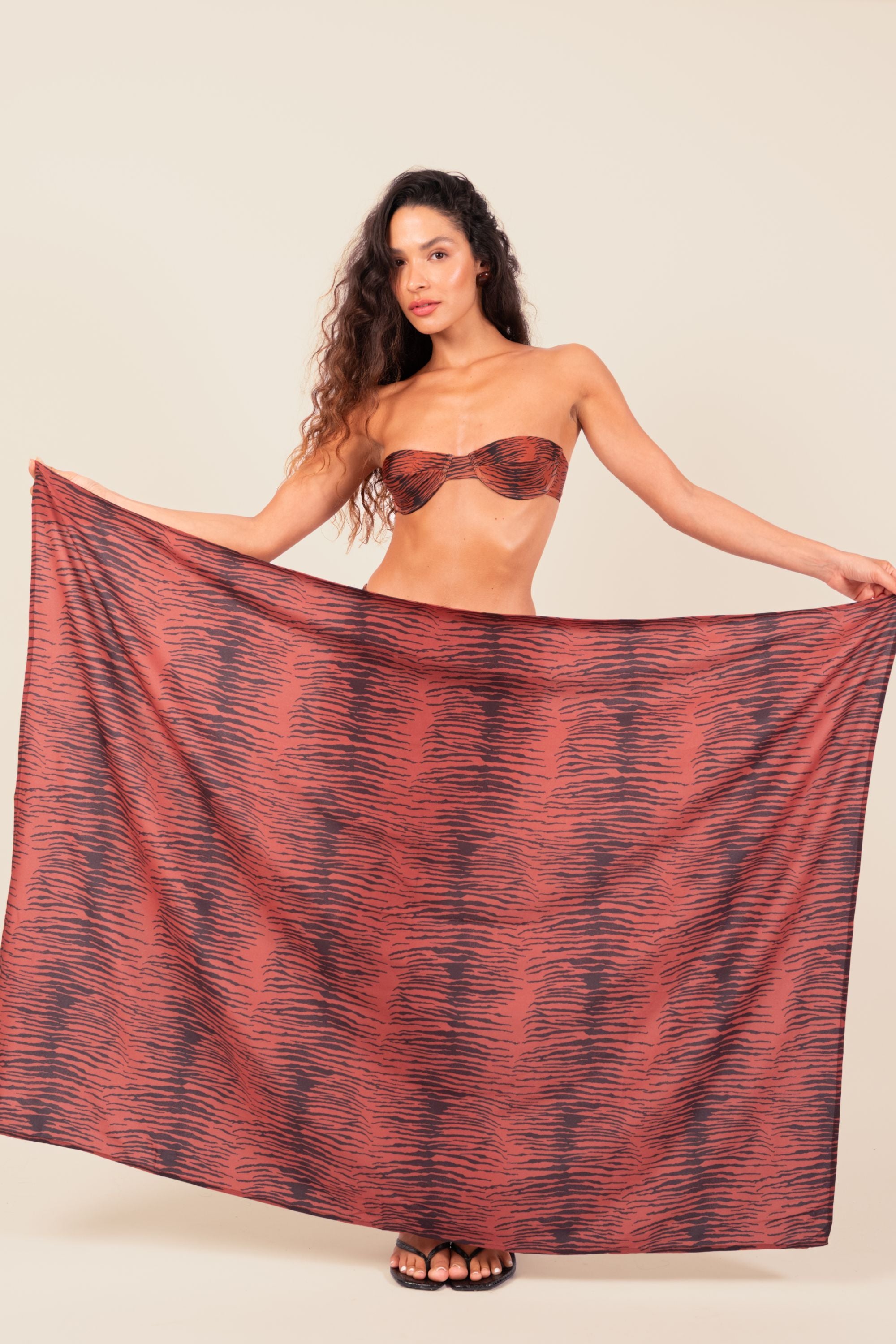 Canga de poliéster, toque suave e maleável. A peça de formato retangular possui acabamento em pesponto. Tamanho único.