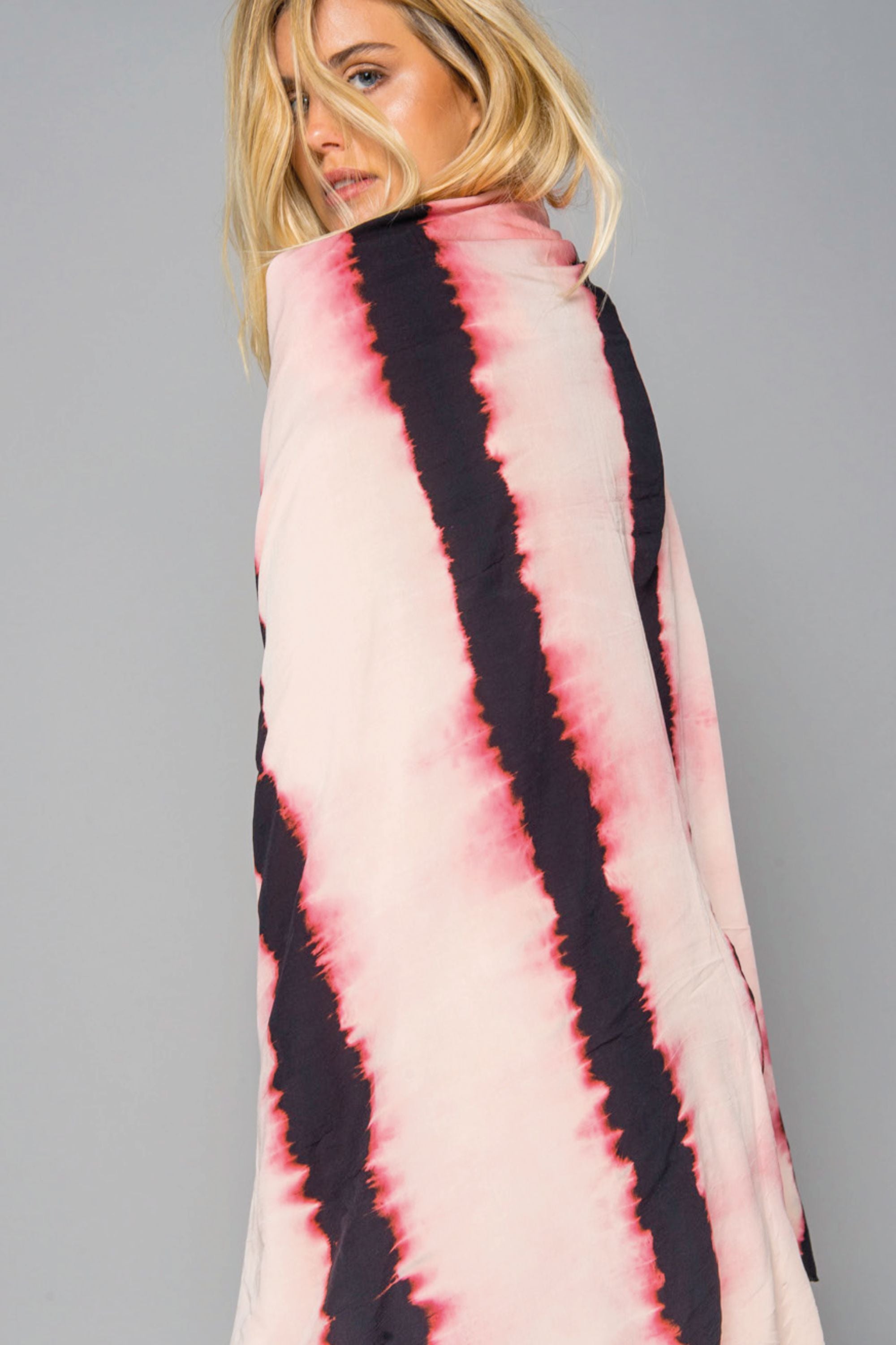 Canga de viscose, toque suave e maleável. A peça de formato retangular possui acabamento em pesponto e etiqueta da marca. Corrosão artesanal em base preta. A franja pode variar de tonalidade.