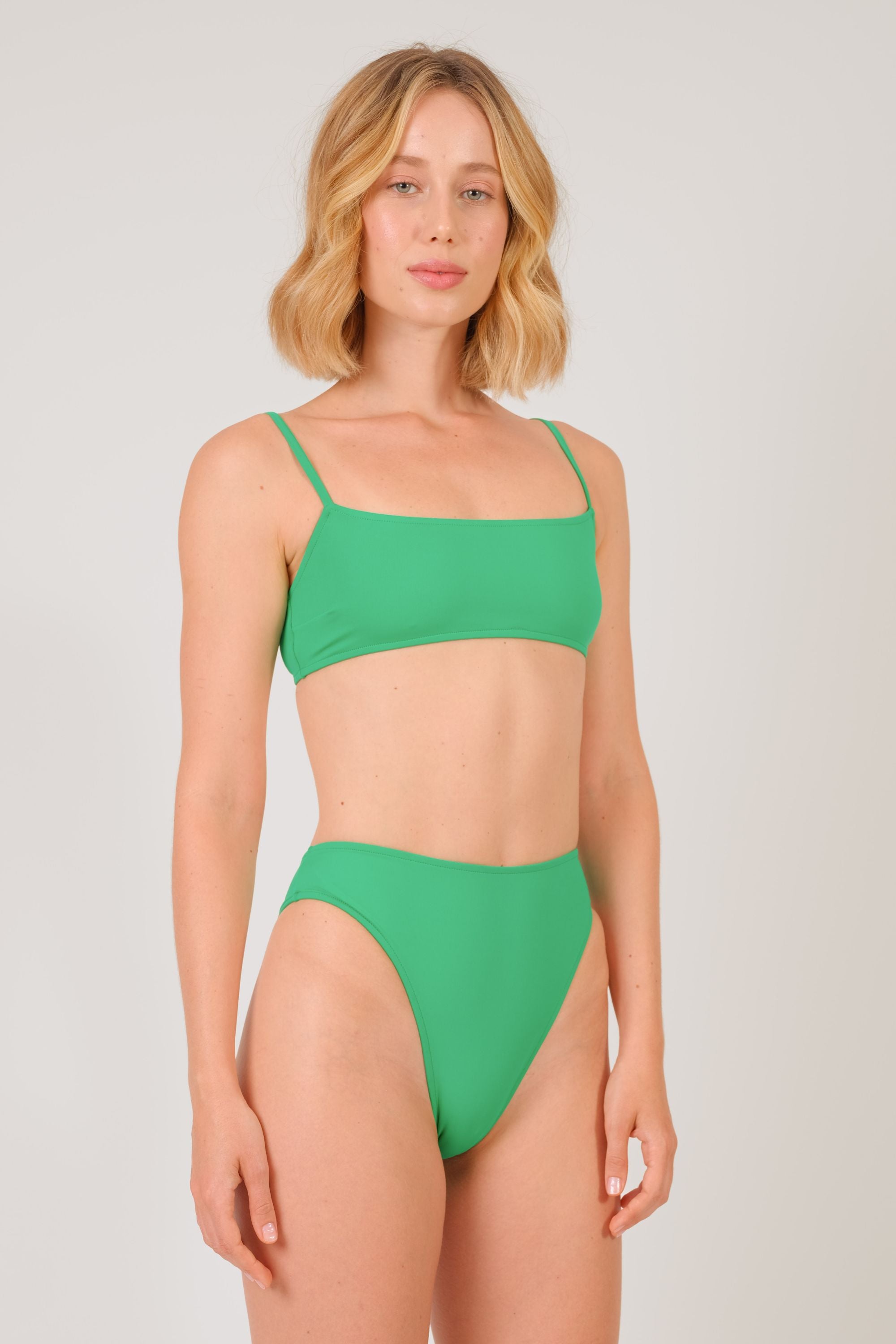 Calcinha em tecido biodegradável Amni Soul Eco®, proteção UV 80. Modelo hotpants cavada. Modelo veste P.