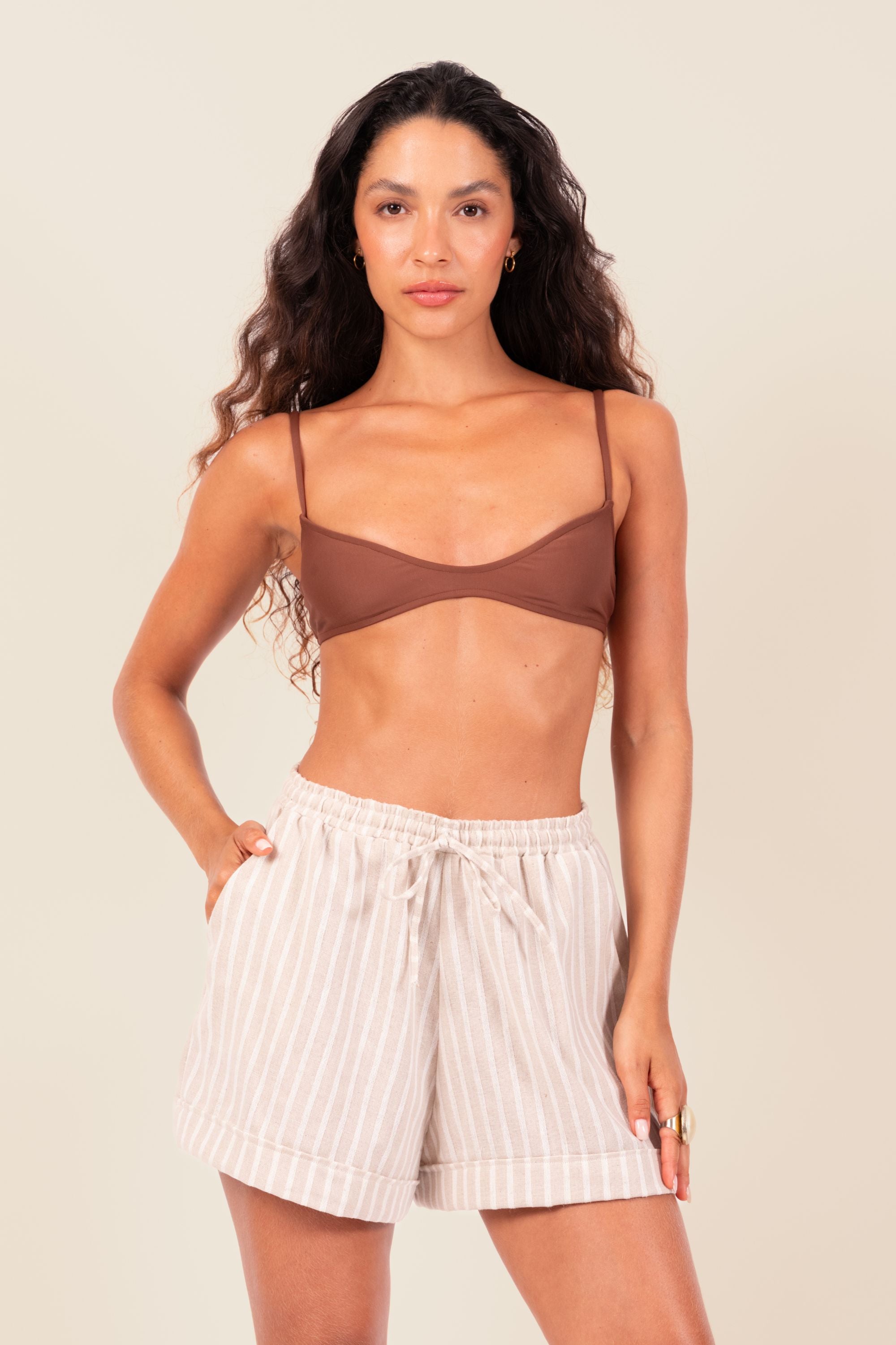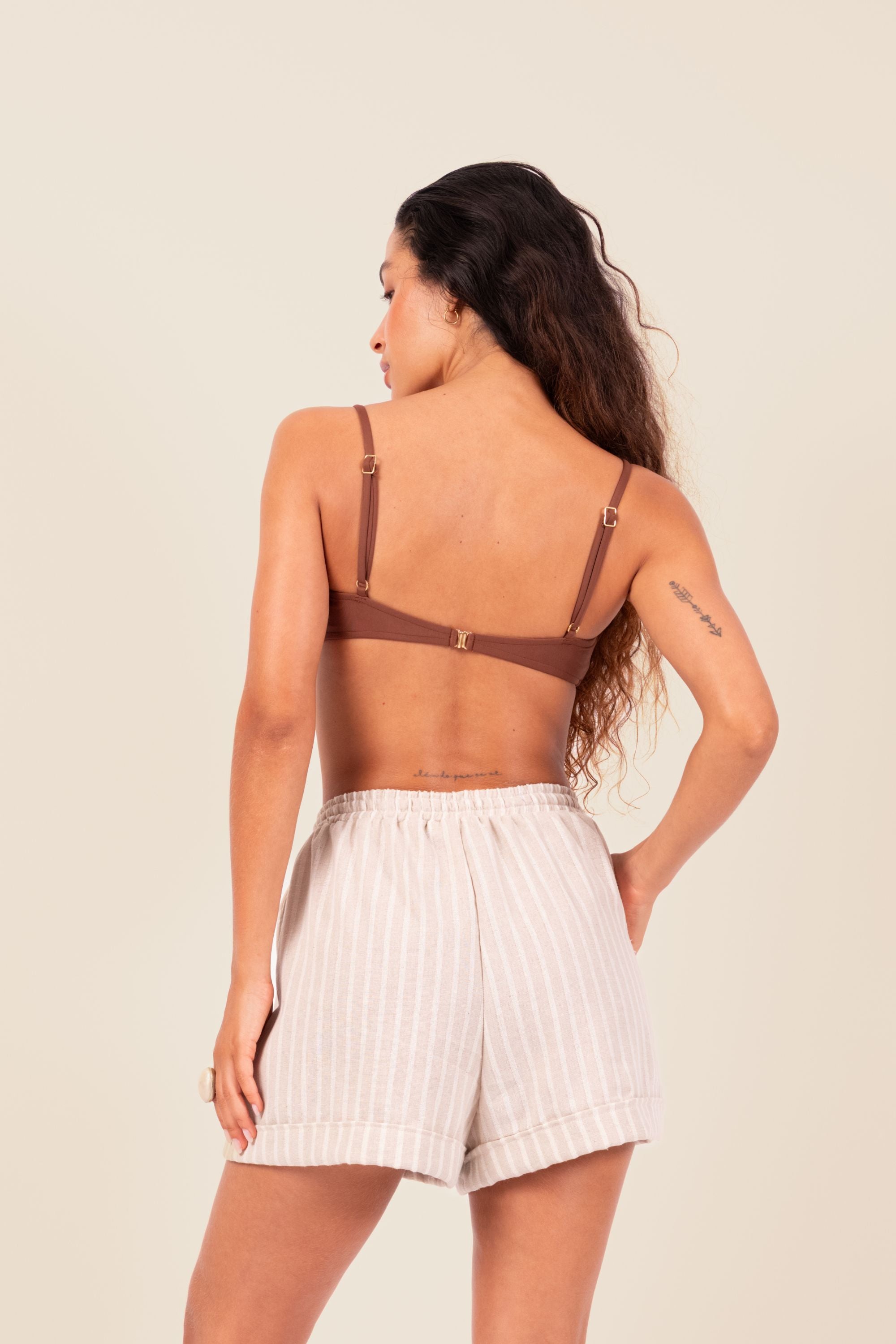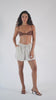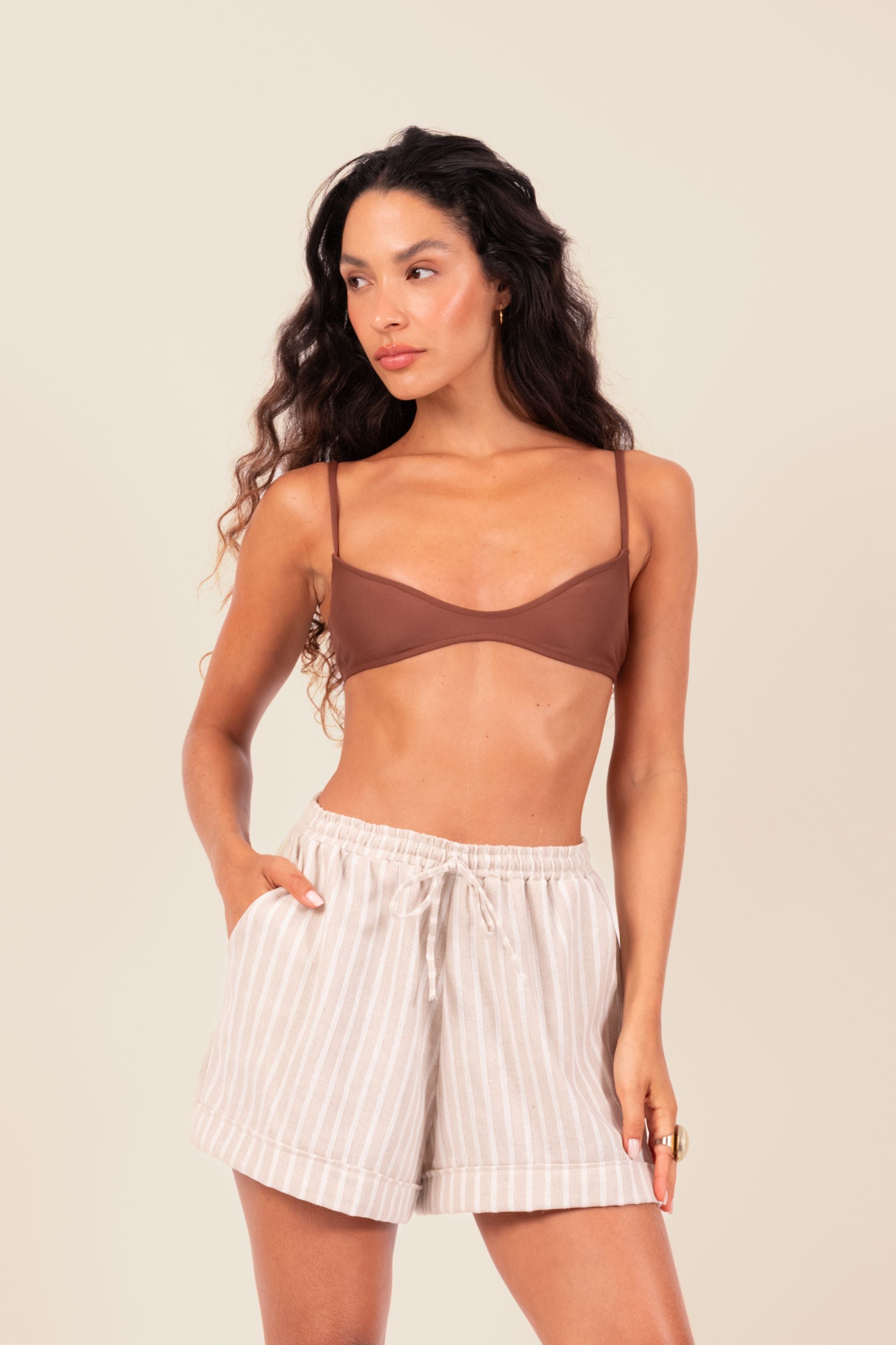 Produto em linho misto, modelo amplo e cintura alta. Possui dois bolsos frontais e laço para regulagem na cintura. Prático e confortável, para todas as situações.
