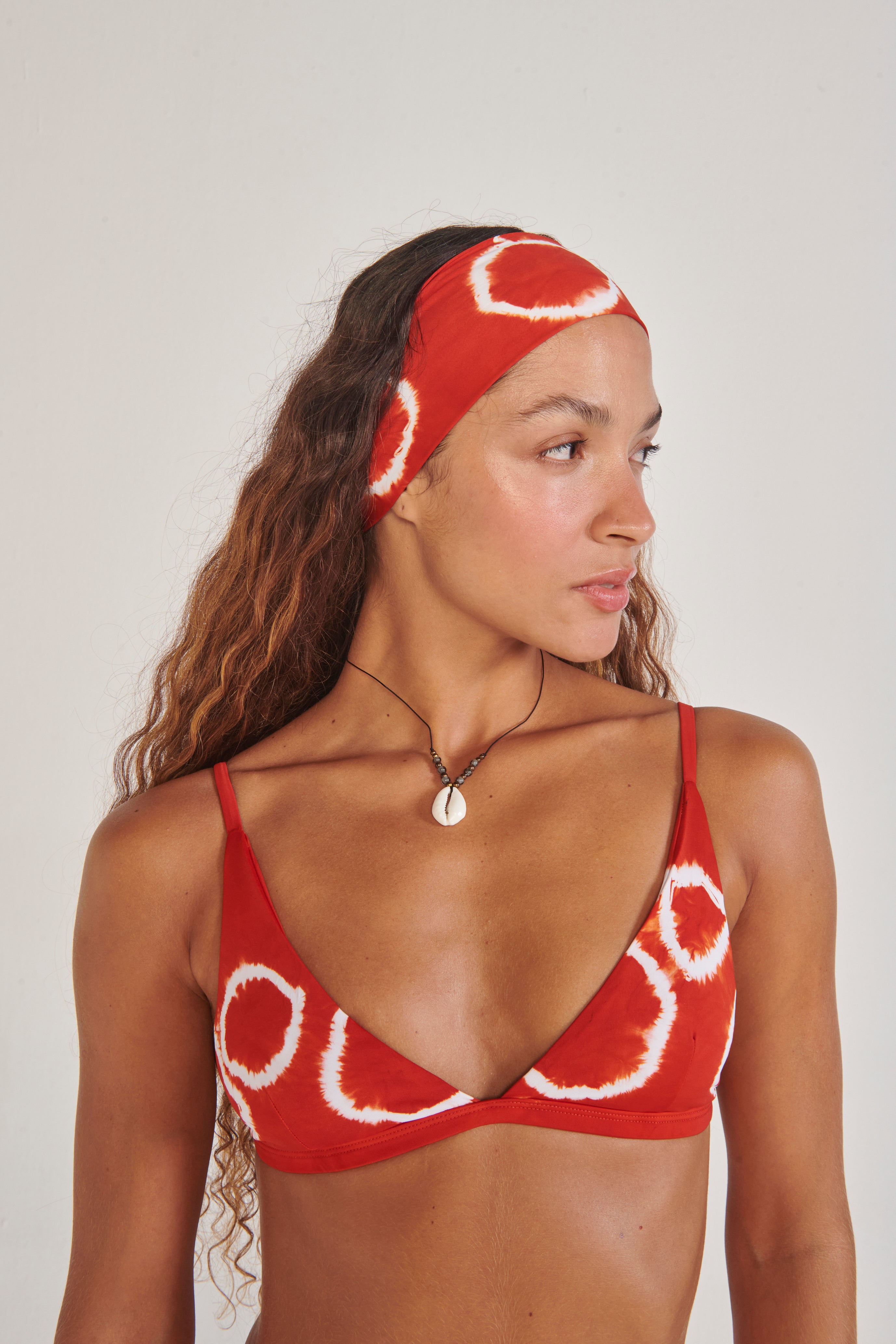 Top em tecido fluity, toda sua costura é embutida. Modelo fixo com decote V, possui bojo removível e alças soltas garantindo diversas formas de amarração. Tingimento artesanal.