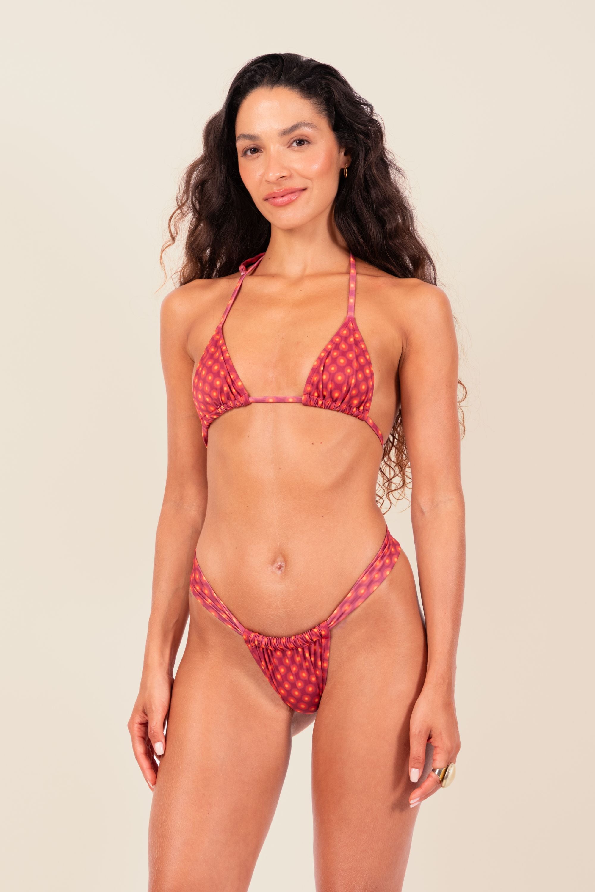 Top em tecido biodegradável Amni Soul Eco®, proteção UV 80. Modelo cortininha com alças soltas e bojo removível.